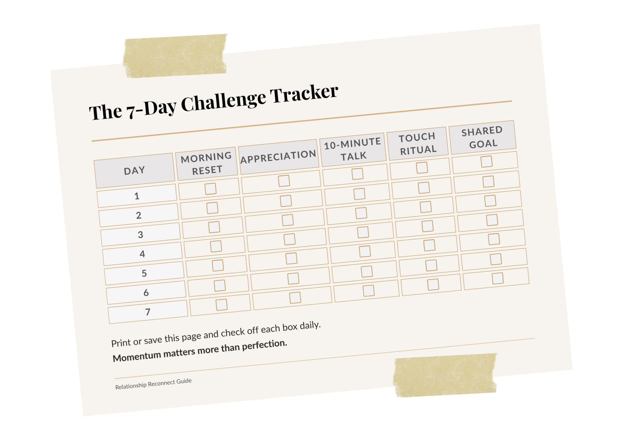 Discover the 7-day, science-backed system built around 5 simple daily actions that help couples rebuild trust, warmth, and closeness — even if things feel distant.